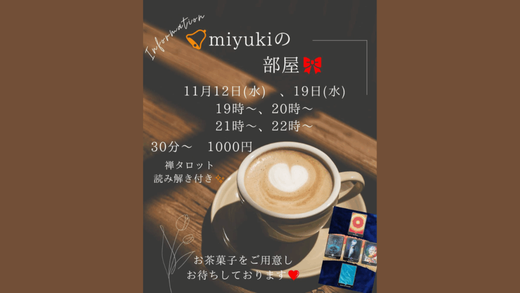 あなたの想いの言語化お手伝いさせて下さい先月からスタートした、miyukiの部屋回数を重ねるごとに、バージョンアップ1ヶ月後、また近況を聞いて欲しい!とリピートのお声も頂いております静かなbarとmiyukiを貸し切ってお話しいただける時間を提供します...