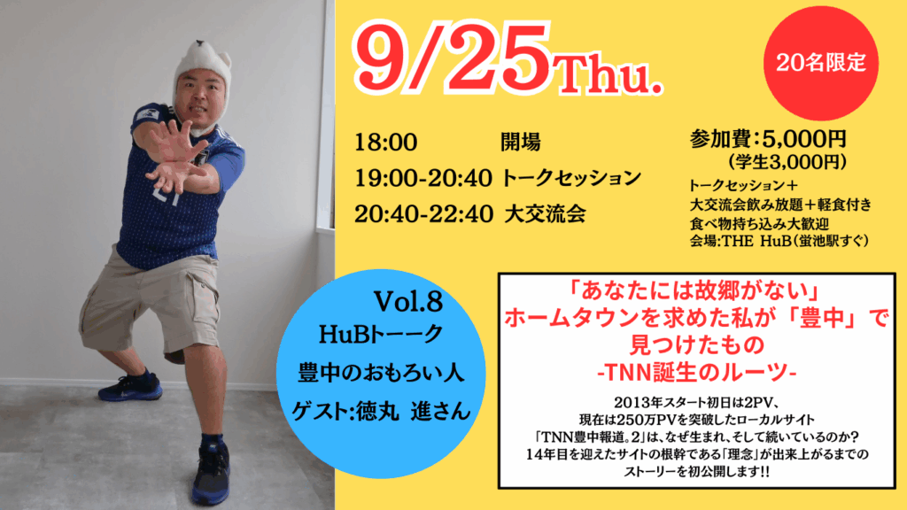 HuBトーーク 豊中のおもろい人Vol.8 ゲスト徳丸 進さん トークセッション&大交流会 ※20名限定