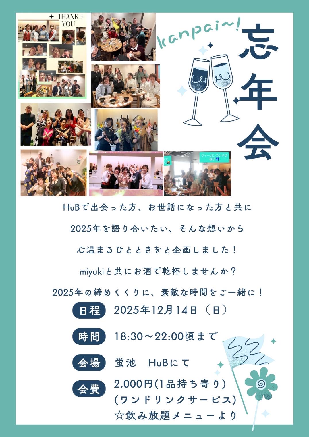 12月 14 @ 18:30 - 23:00 miyukiの忘年会⭐︎ご縁って不思議だな miyukiが今年お世話になった皆様に感謝を込めて忘年会を開催します♡ 場所はもちろん、毎月お世話になっている […] ¥2000
